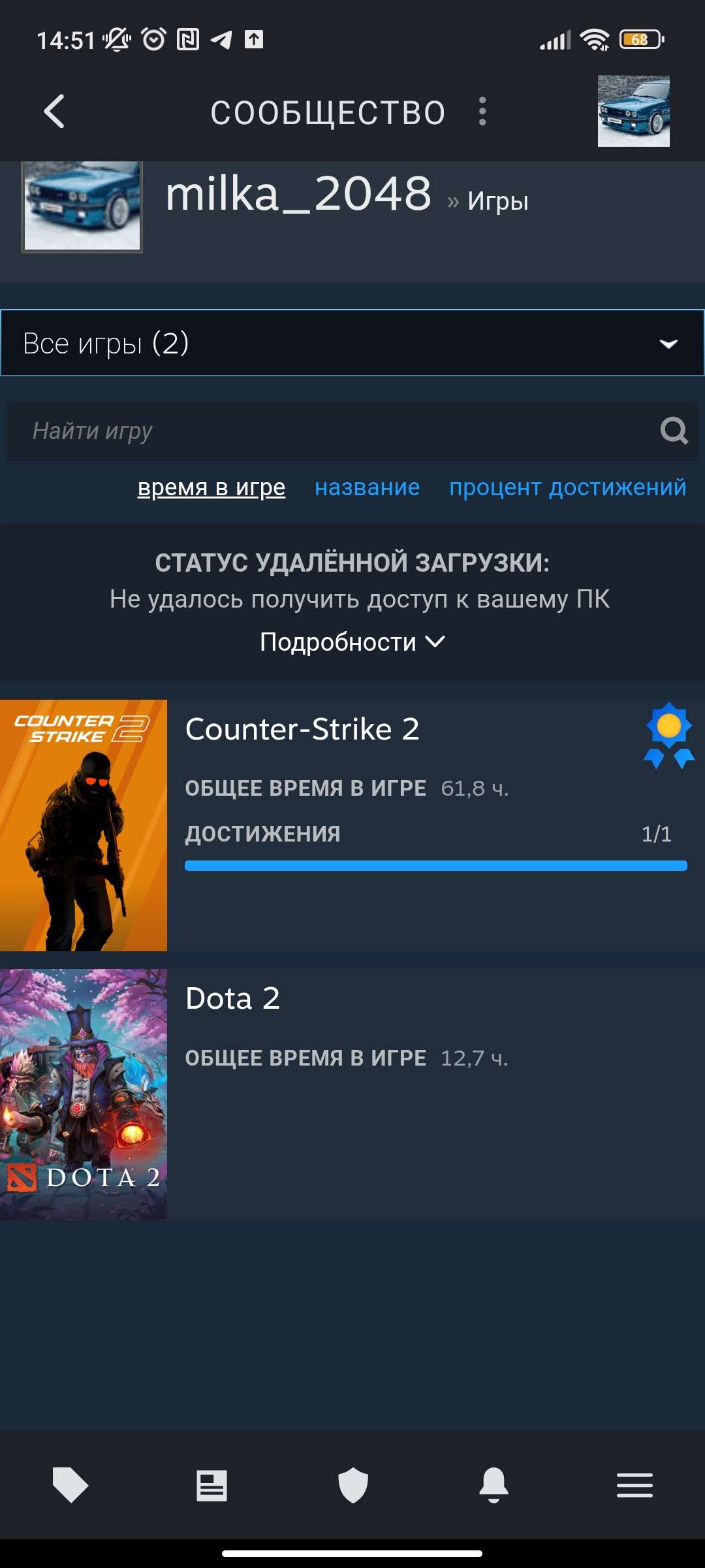 ⭐️Звание: Silver 2; 🌟Prime Status: Есть; ⏱Часов в игре: 61;