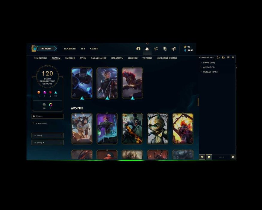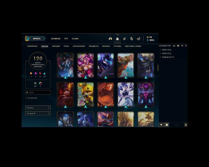 ✨Кол-во скинов: 120 (1 абсолютный скин мисс фортуна , мифический энни , 9 легендарных , 28 эпических,